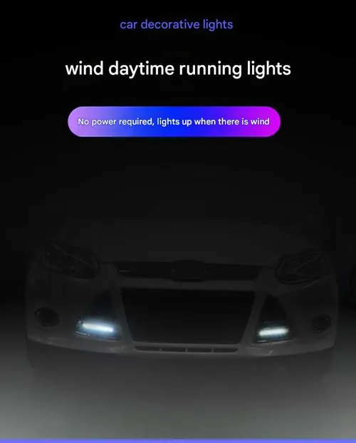 (1 Pair)Car Wind-Powered Daytime Running Lights - LED Wind-Activated Grille Lights for Vehicle Modification | Wire-Free Blue Decorative Wind Lights
