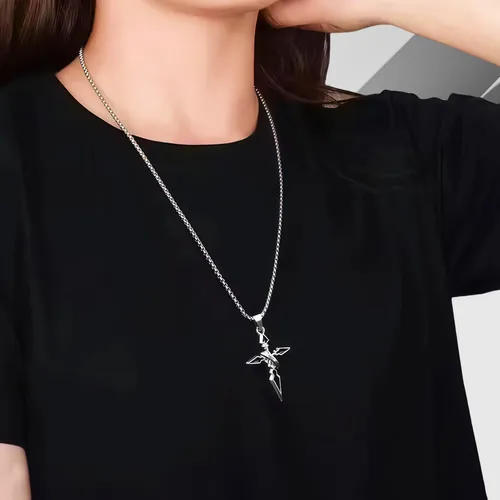 Cross Pendant Necklace for Men - Trendy Titanium Steel Chain with Loop | Stylish Versatile Necklace, Perfect Accessory for Hoodies