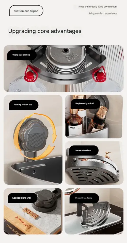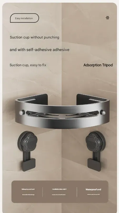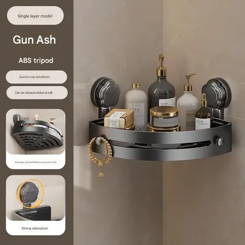 Gray Single-Layer Suction Cup Triangle Storage Rack - Drill-Free Bathroom Organizer | Suction Cup Towel Rack for Bathroom & Toilet Storage
