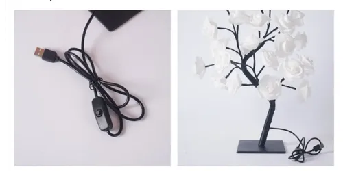 LED Rose Tree Lights - Romantic 24-LED White Rose Lights with USB and Switch | Room-Friendly | Gift | Night Light