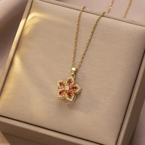 Orange & White Bauhinia Rotatable Necklace for Women - Dainty Zircon Flower Necklace with Spinning Design | Unique Rotatable Zircon Clavicle Chain, Fashionable Jewelry