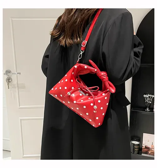 Red Polka Dot Handbag - Stylish Vintage-Inspired Mini Tote | Unique Designer Crossbody Bag for Daily Commute & Versatile Outfits