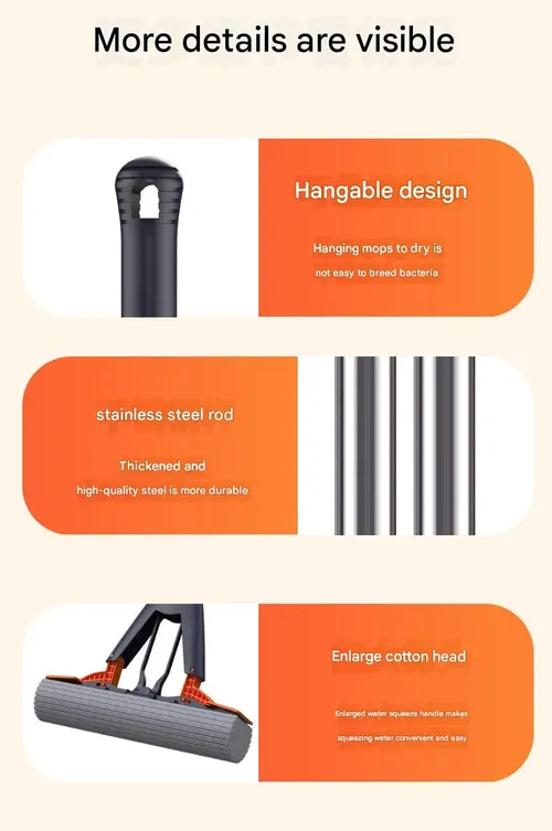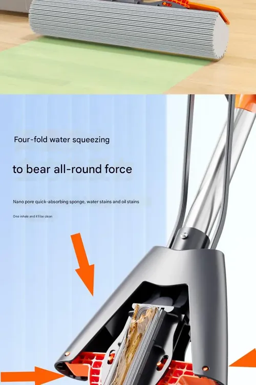 Retractable Sponge Mop for Home Use - 38cm Thickened Super Absorbent Mop | Heavy-Duty Stainless Steel Handle, All-Purpose Cleaning Tool for Floors