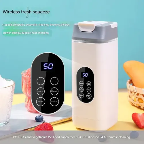 White English Version New Home Juicer - High-Speed Fresh Juicing Cup with USB Charging | 12-Blade Portable Blender for Outdoor & Daily Use